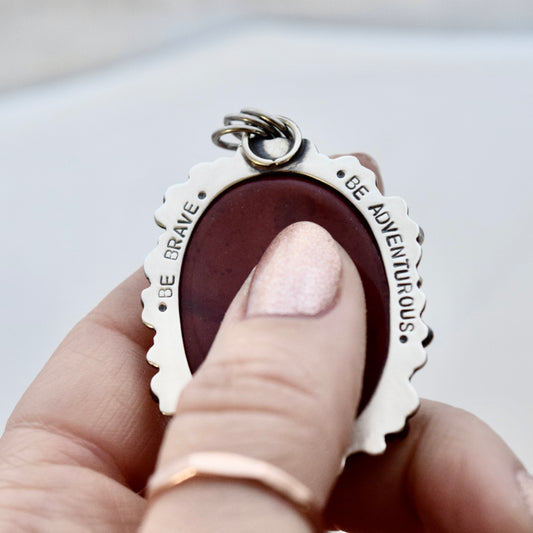 The Lion House Worry Stone Pendant with Red Jasper, Garnet, and Yellow Gold Fill