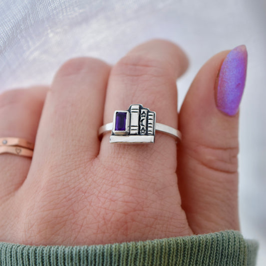 Mini Bookshelf Ring with Amethyst Size 9