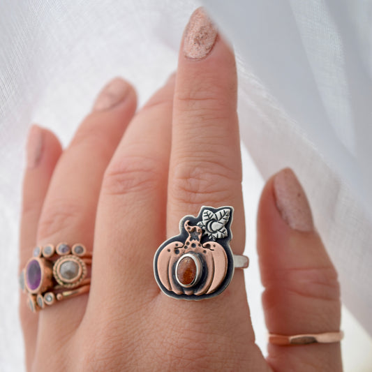 Enchanted Pumpkin ring with Copper and Sunstone size 8