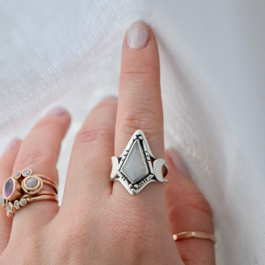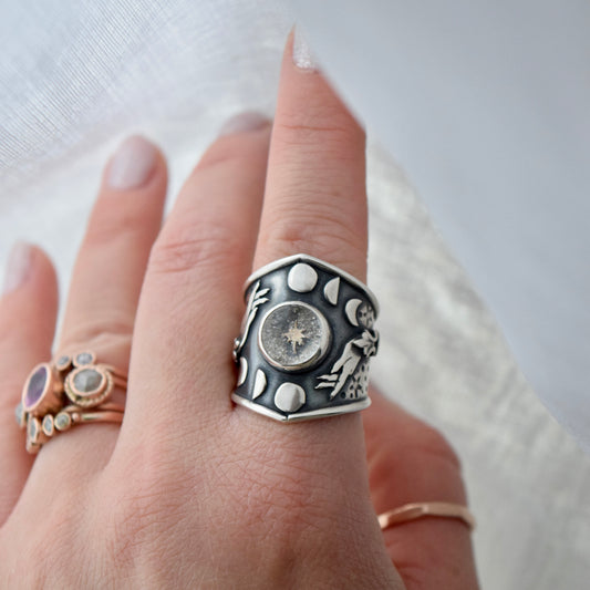 Winter Witch Armor Shield Ring with Clear Quartz size 7/7.25
