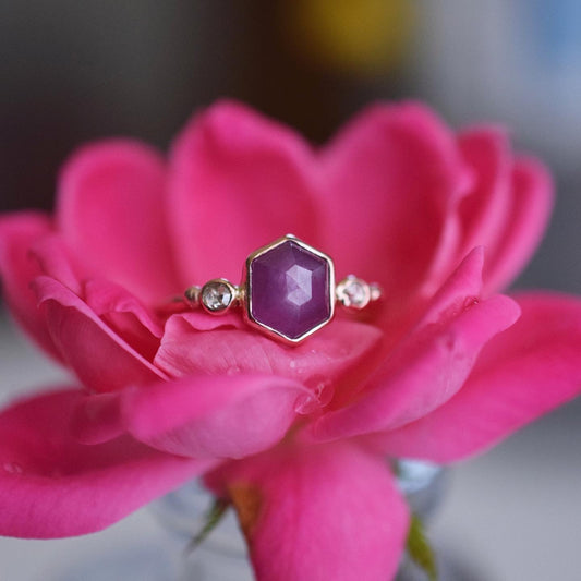 14k Solid Rose Gold Moonlight Siren Ring with rose cut Sapphires size 6