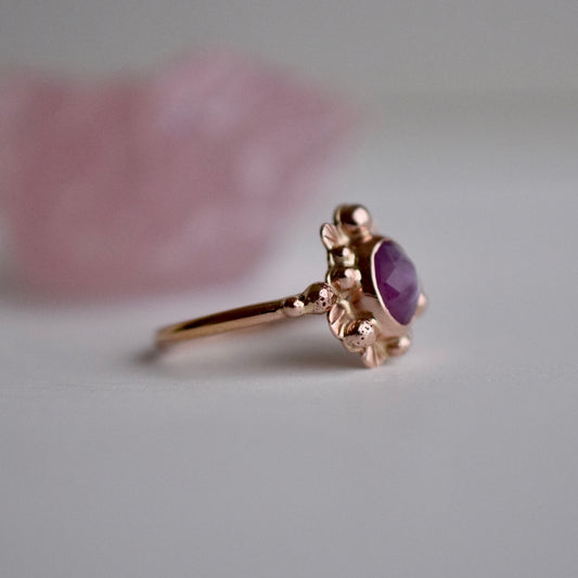 14k Solid Rose Gold Supernova Ring with rose cut Sapphire size 5