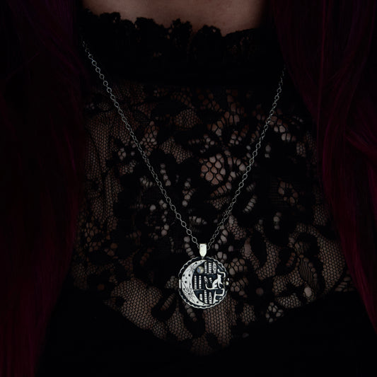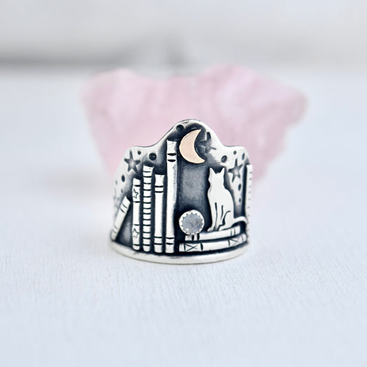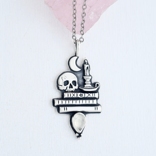 Lunar Library Locket with Rainbow Moonstone and 14k Solid Rose Gold