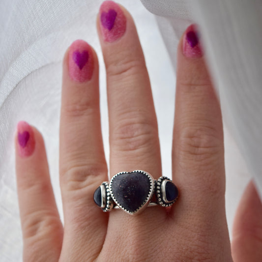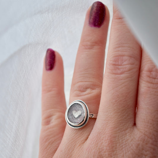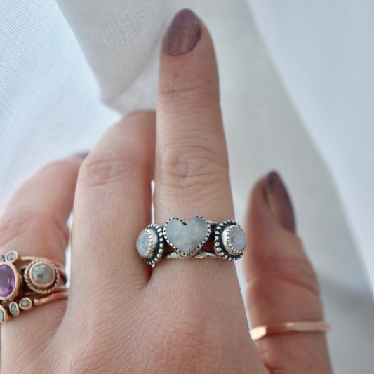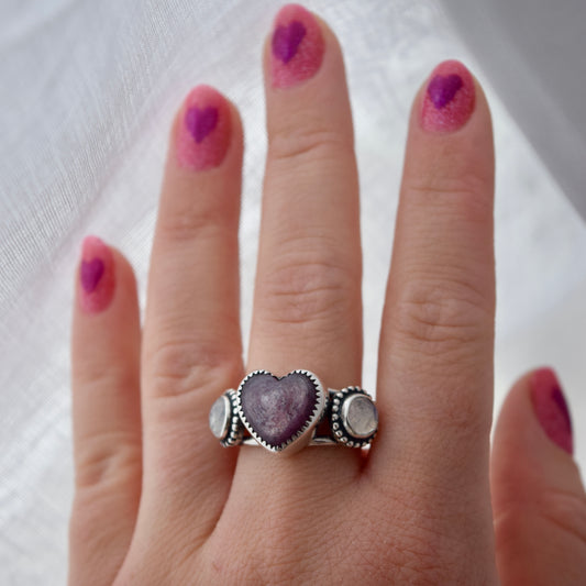 Heart Ring with Lepidolite and Rainbow Moonstone Size 7.5