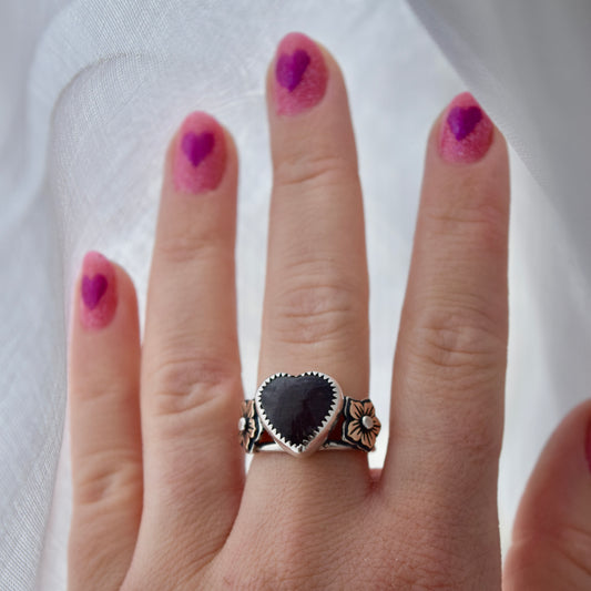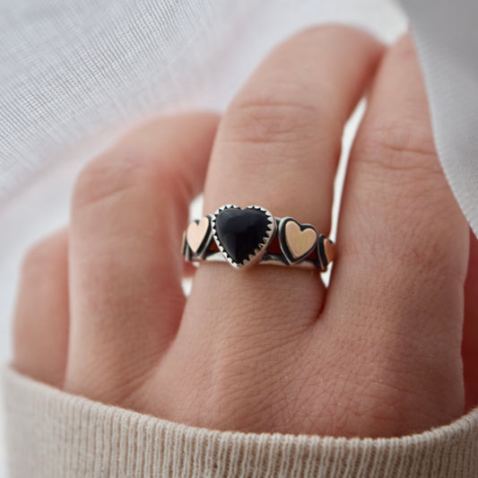 Heart Ring with Black Onyx and Gold Fill Size 5.75/6