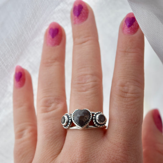 Heart Ring with Chocolate Sapphire and Black Moonstone size 9