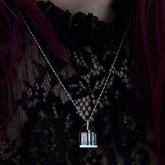 Sold outBookshelf Necklace with Rose Quartz