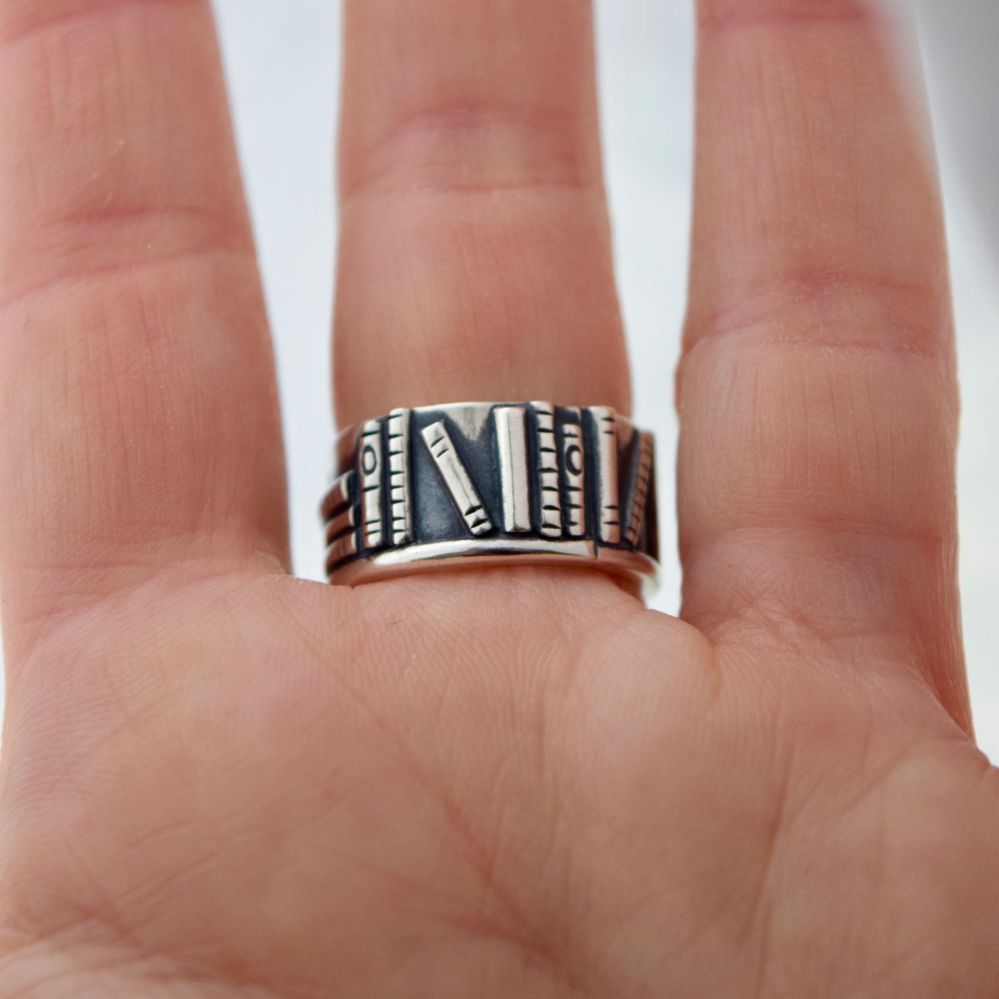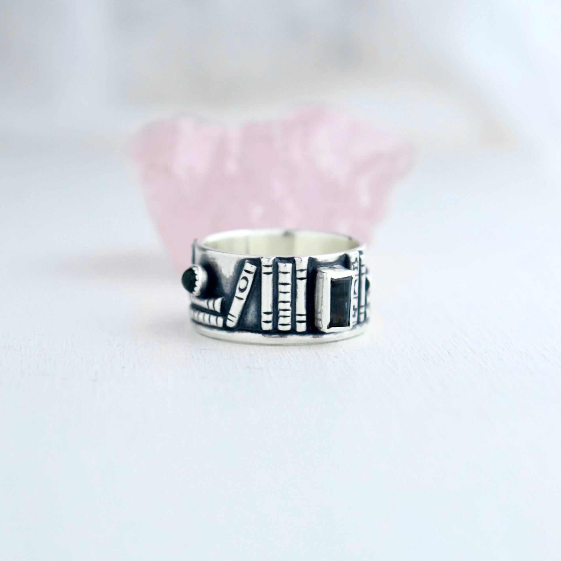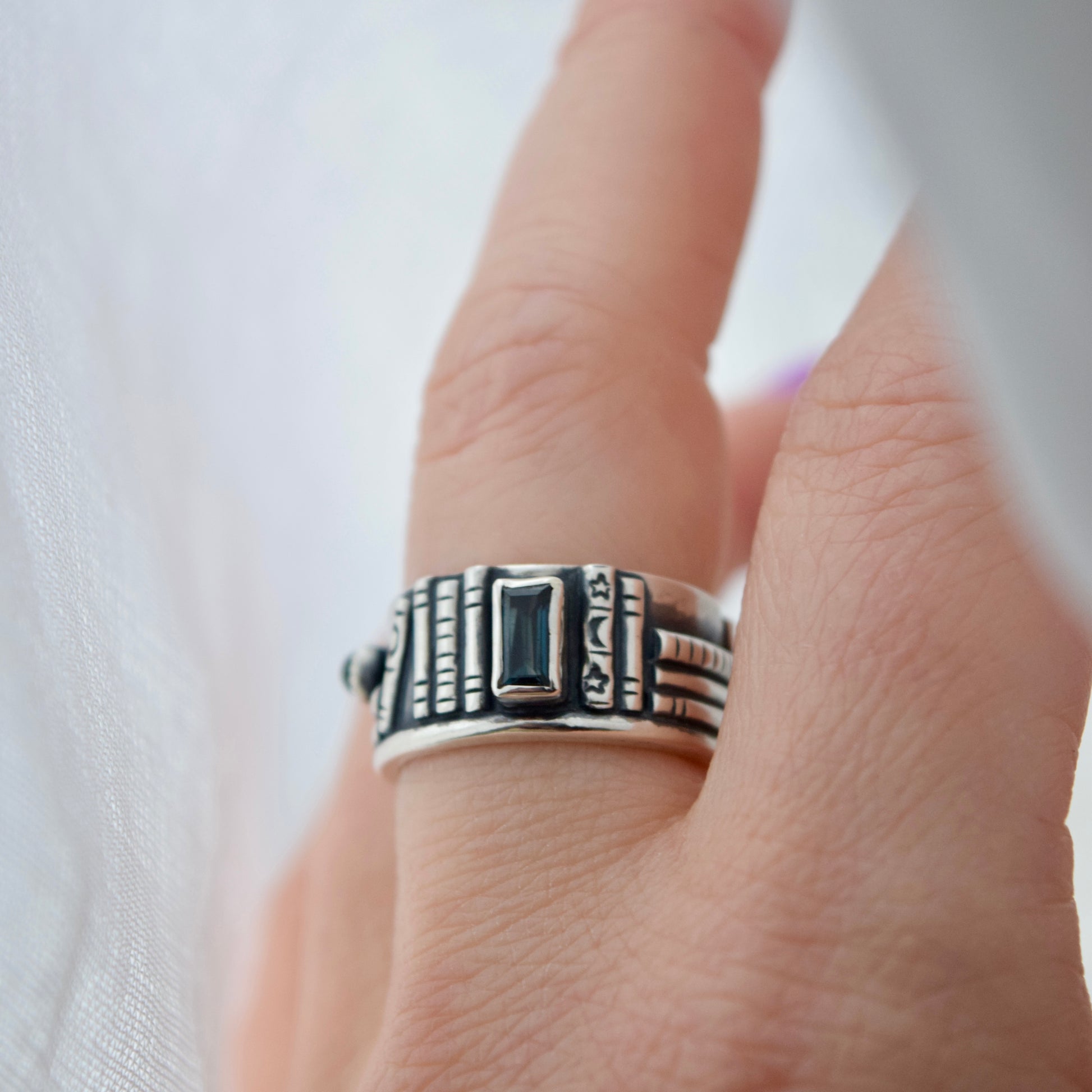 Bookshelf Ring Band with Blue Topaz and Blue Tourmaline Size 6.25