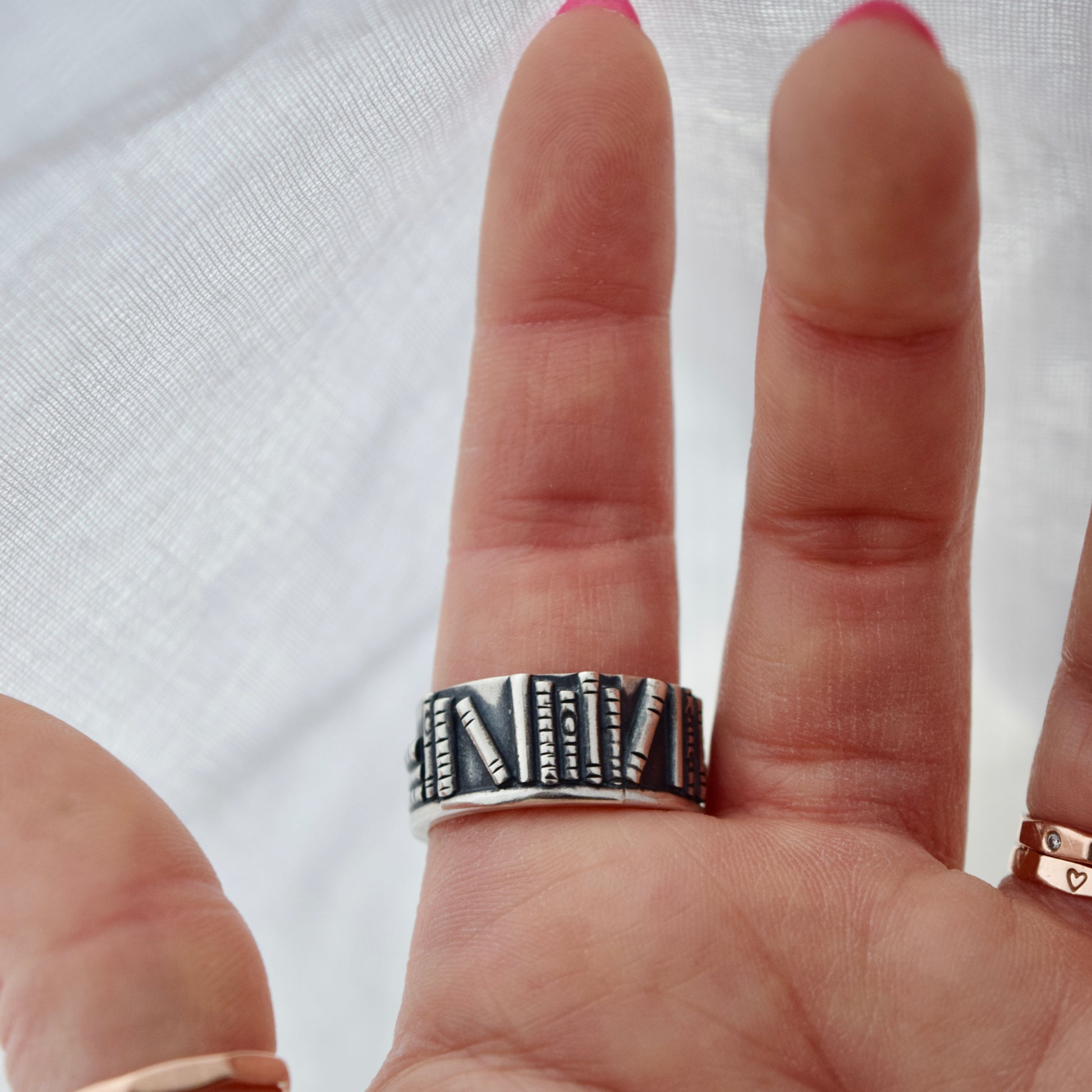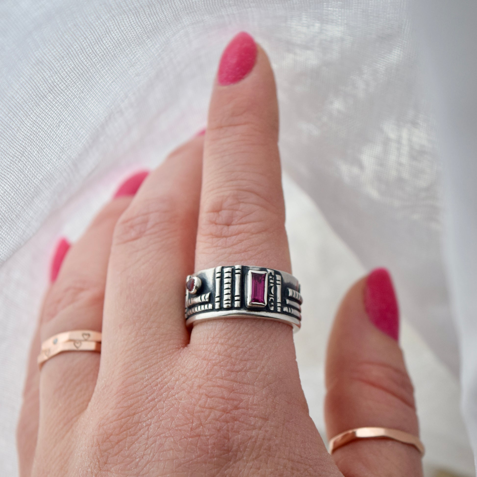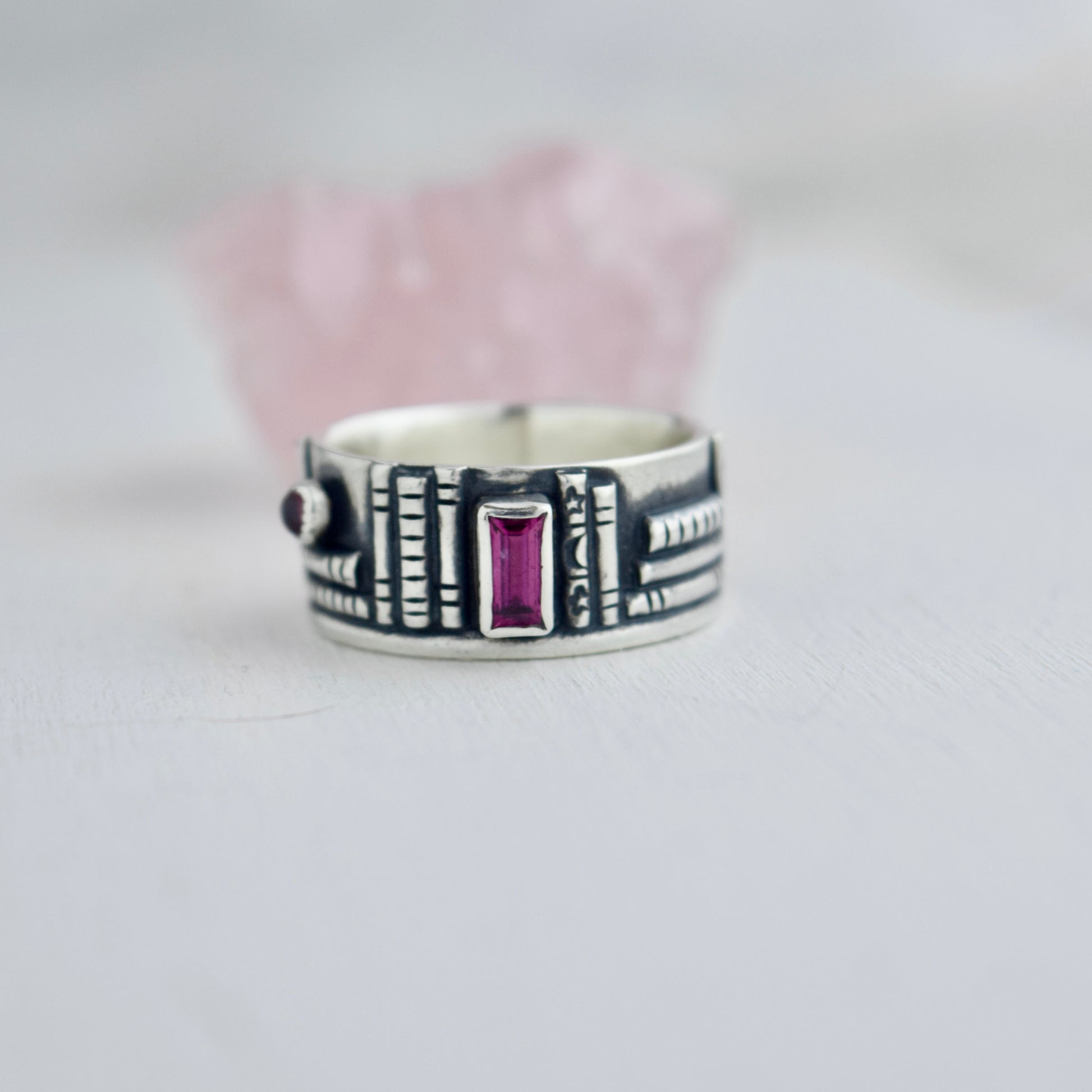 Bookshelf Ring Band with Pink Tourmaline Size 8.5