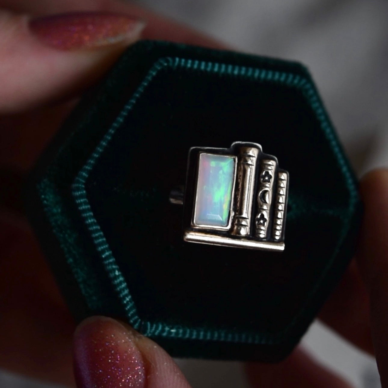 Inspired by a haunted library where the sun rays ignite a world of swirling dust with every move. Subtle sounds come from far off book shelves when you're the only one there. You never know if its the stray cat who keeps you company or the ghosts of readers past. Although this place would make others run for the hills, you find solace in the unknown. The shelves are lined with stories and adventures to be read but among those spines you've tucked away magical little trinkets. Skulls, crystals, potion bottles, and candles. This place is your escape from the outside world. A place you seek when storms roll through, finding your secret nook filled with all your favorite things. A steaming mug filled with your favorite brew and a book filled with a new world to explore. Happy reading!