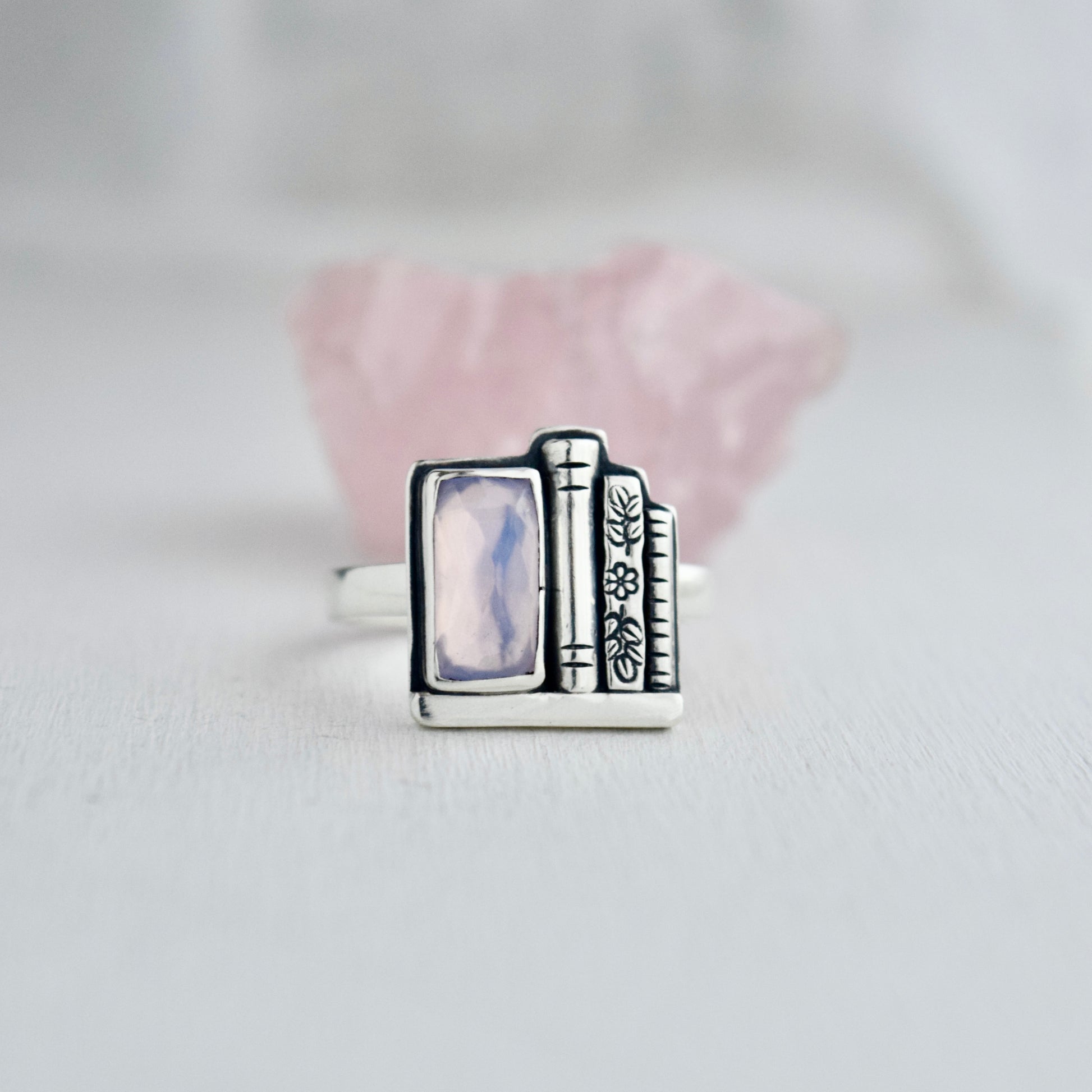 Bookshelf Ring with Faceted Lavender Quartz Size 10.5