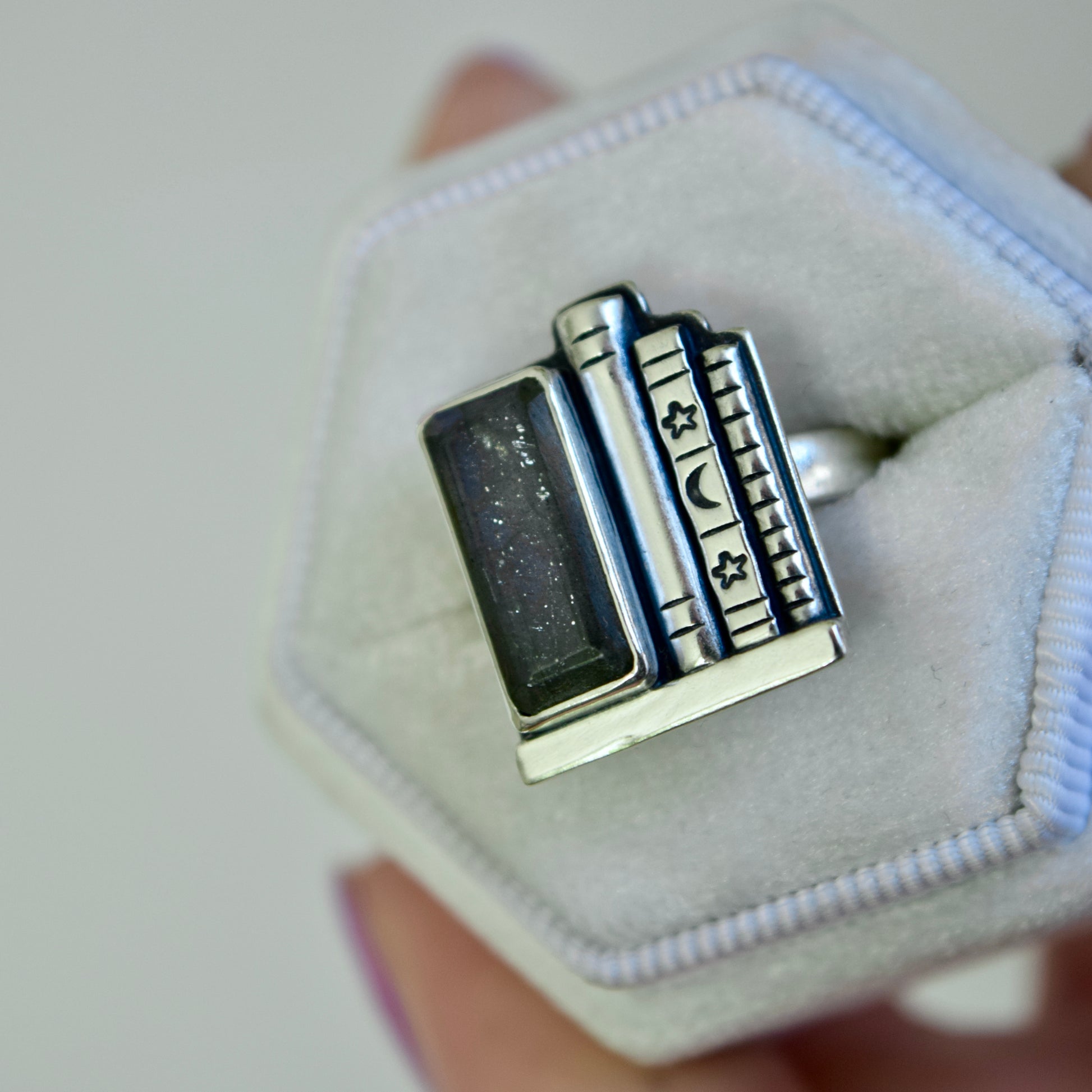 Inspired by a haunted library where the sun rays ignite a world of swirling dust with every move. Subtle sounds come from far off book shelves when you're the only one there. You never know if its the stray cat who keeps you company or the ghosts of readers past. Although this place would make others run for the hills, you find solace in the unknown. The shelves are lined with stories and adventures to be read but among those spines you've tucked away magical little trinkets. Skulls, crystals, potion bottles, and candles. This place is your escape from the outside world. A place you seek when storms roll through, finding your secret nook filled with all your favorite things. A steaming mug filled with your favorite brew and a book filled with a new world to explore. Happy reading!