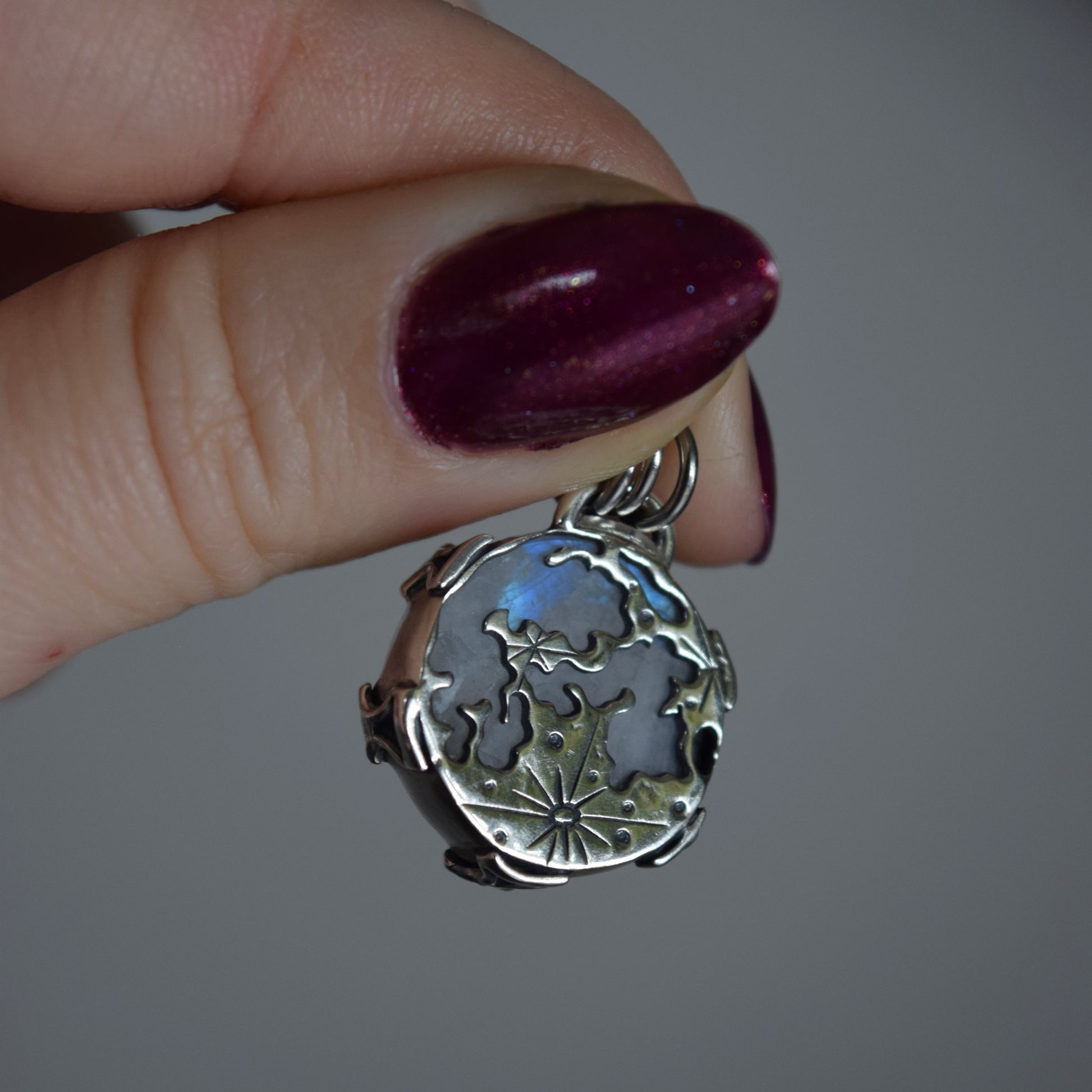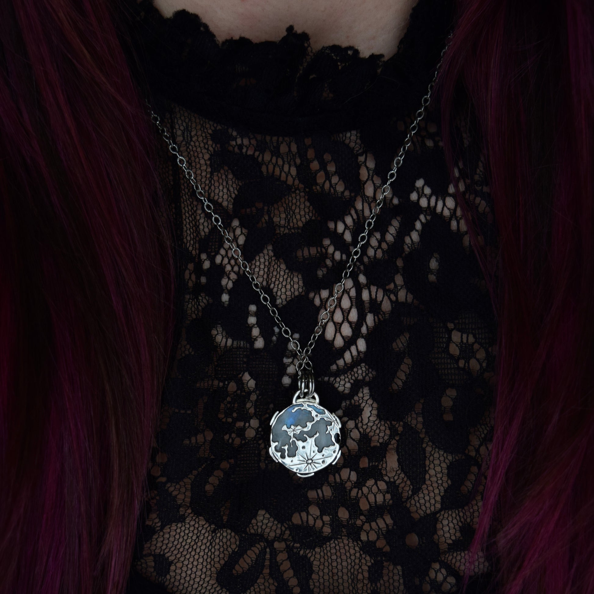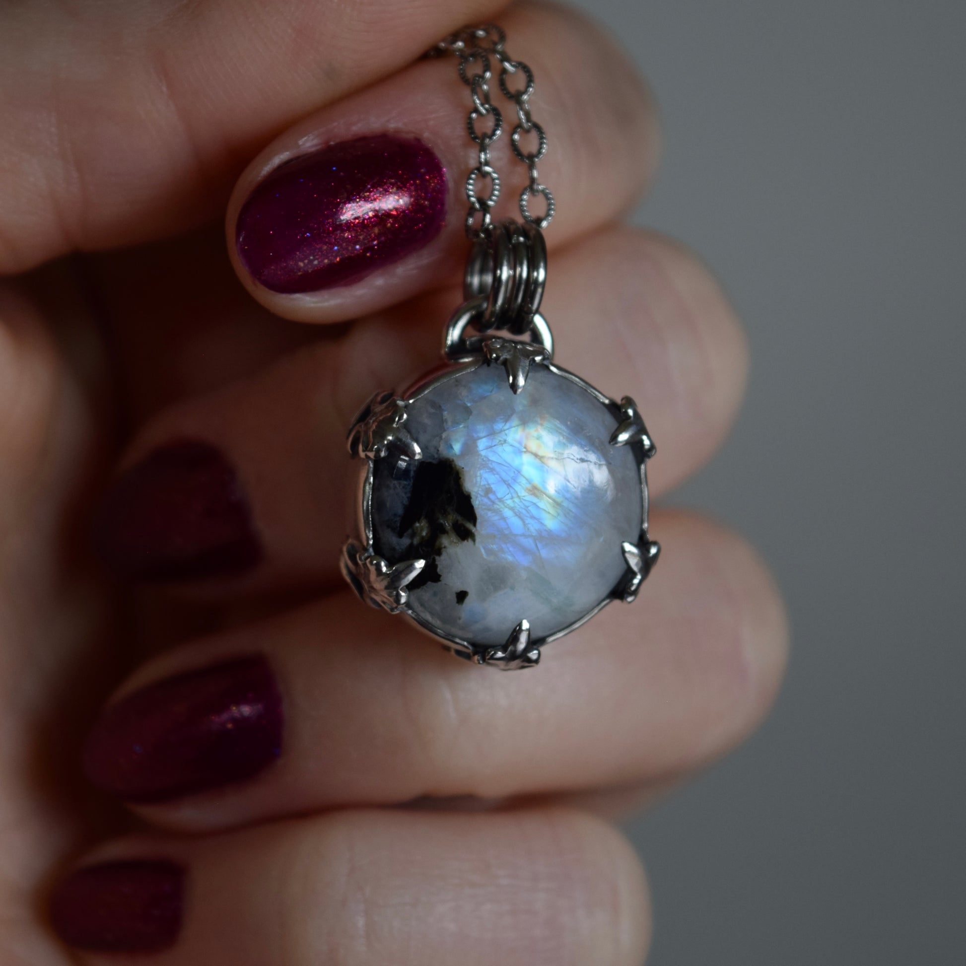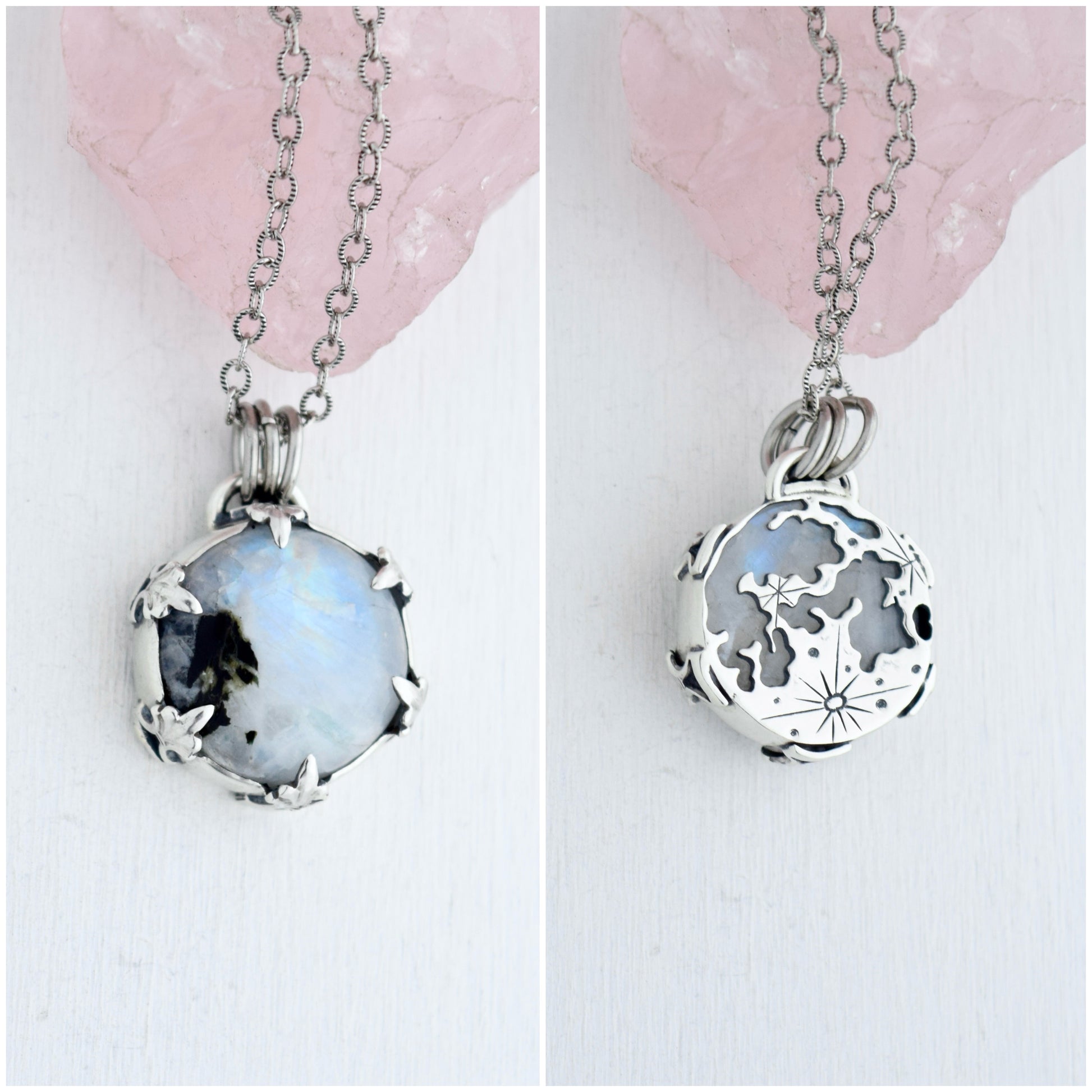 Double Sided Full Moon Rainbow Moonstone Necklace