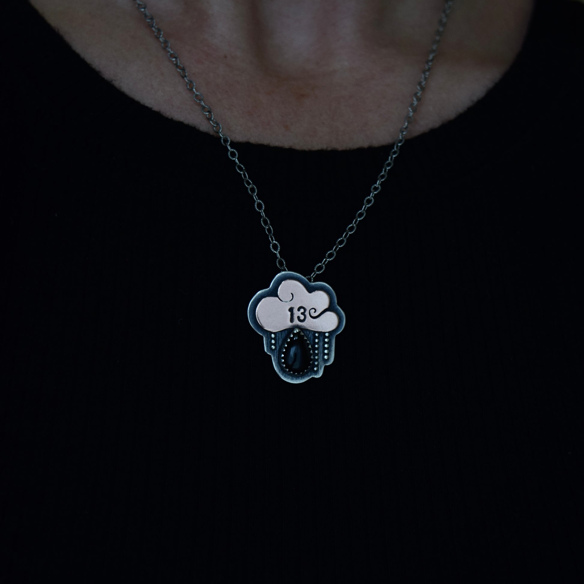 Friday the 13th Little Dark Cloud Necklace with Black Onyx #002