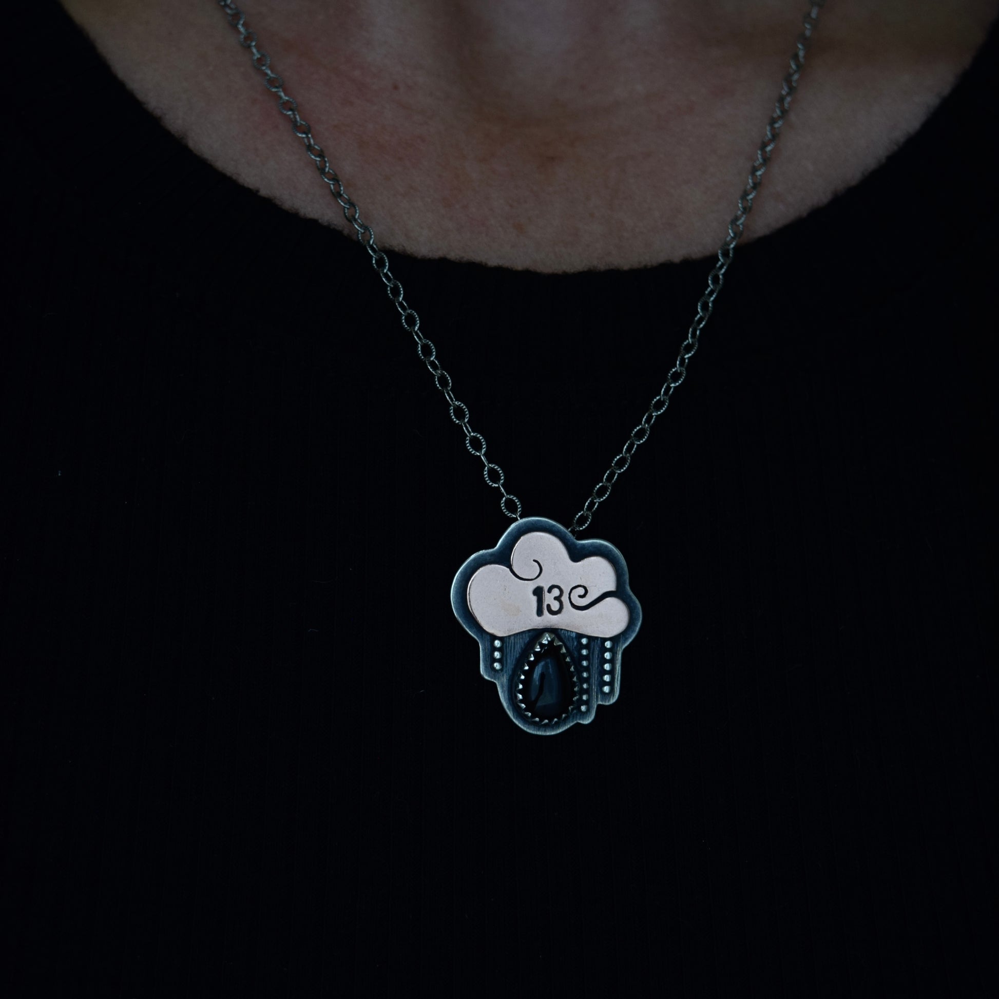 Friday the 13th Little Dark Cloud Necklace with Black Onyx #005