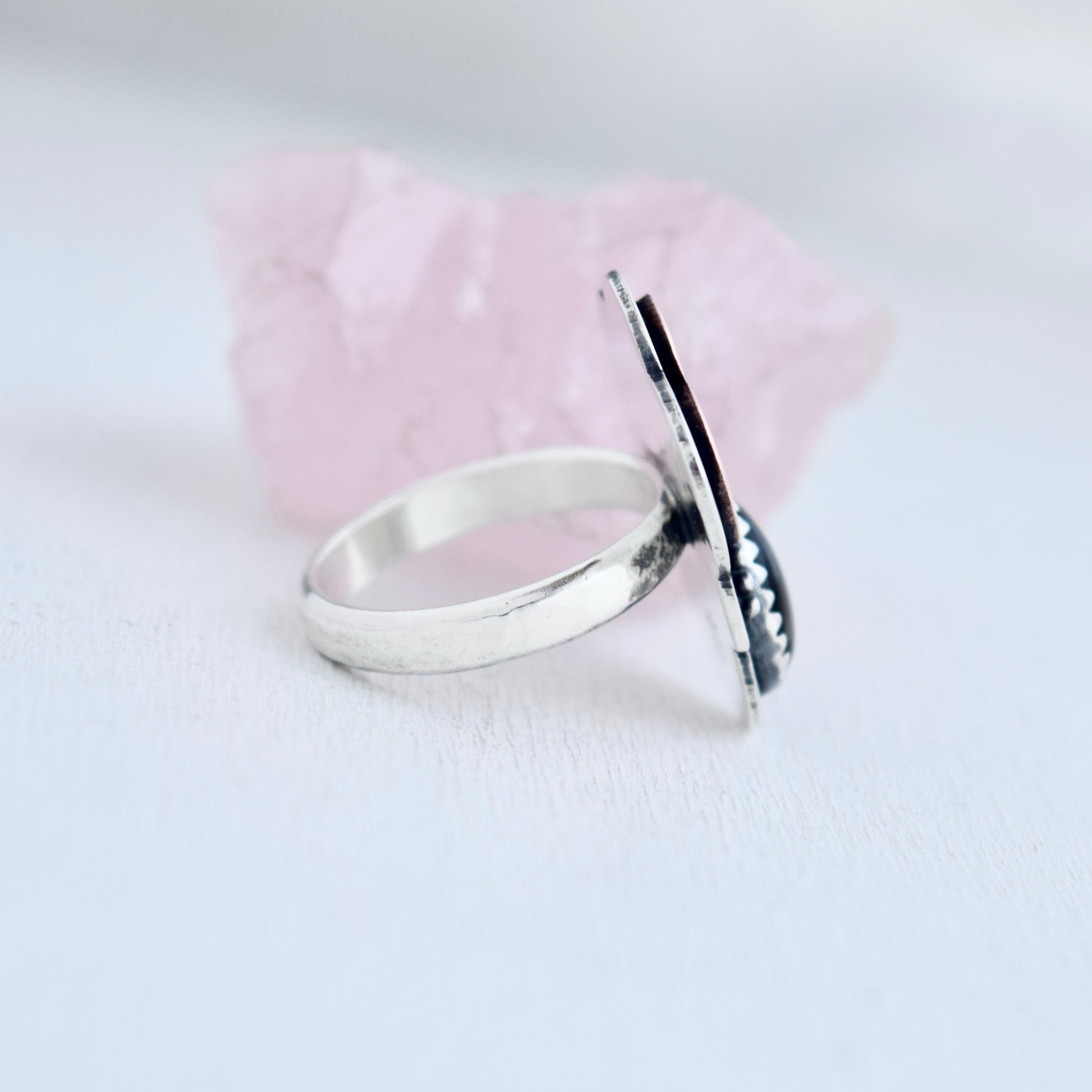 Find your new beginning with this Little Dark Cloud. Completely hand forged from sterling silver and copper, it frames a beautiful stone rain drop to remind you there is beauty within the darkness.