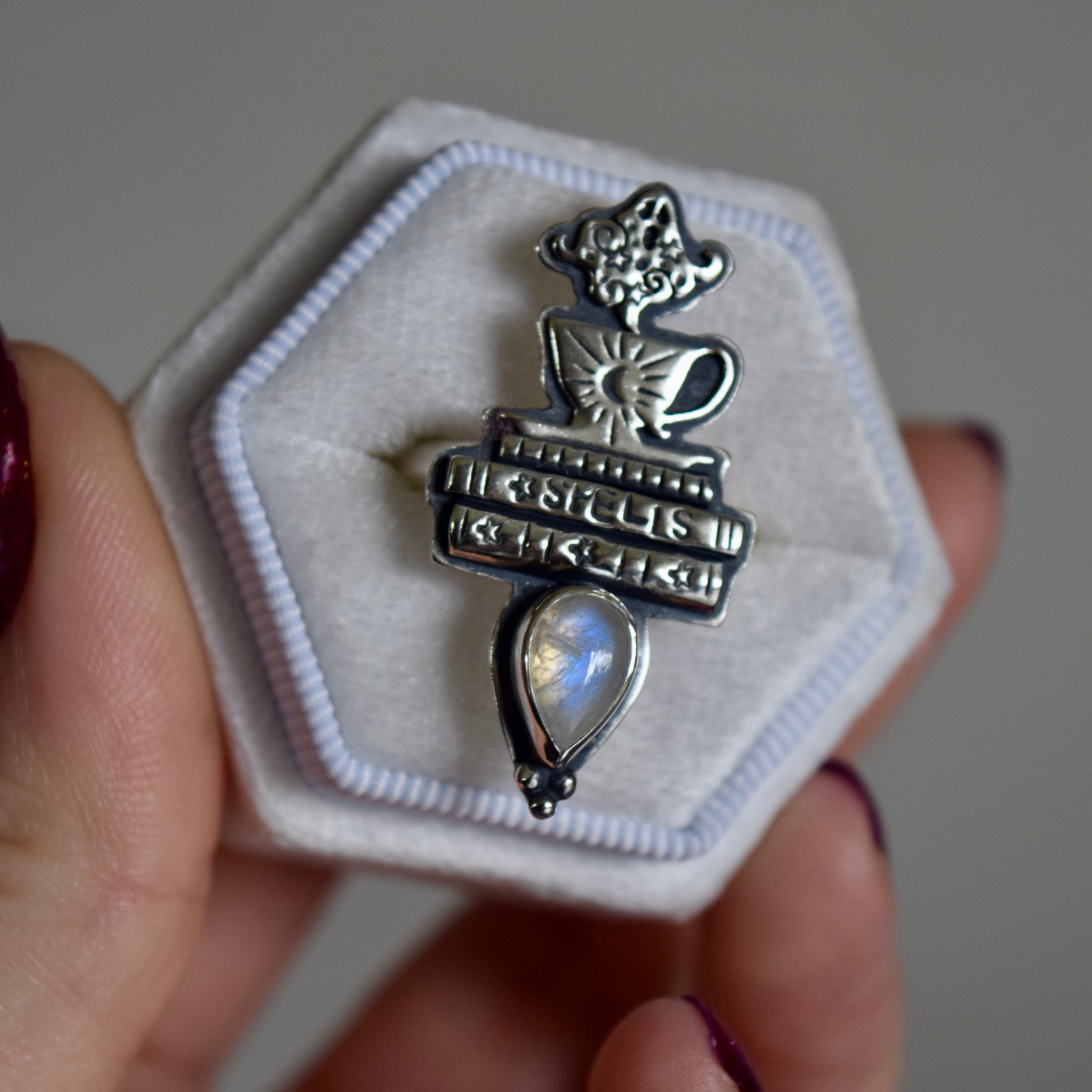 Ghostly Cafe Ring with Rainbow Moonstone Size 7